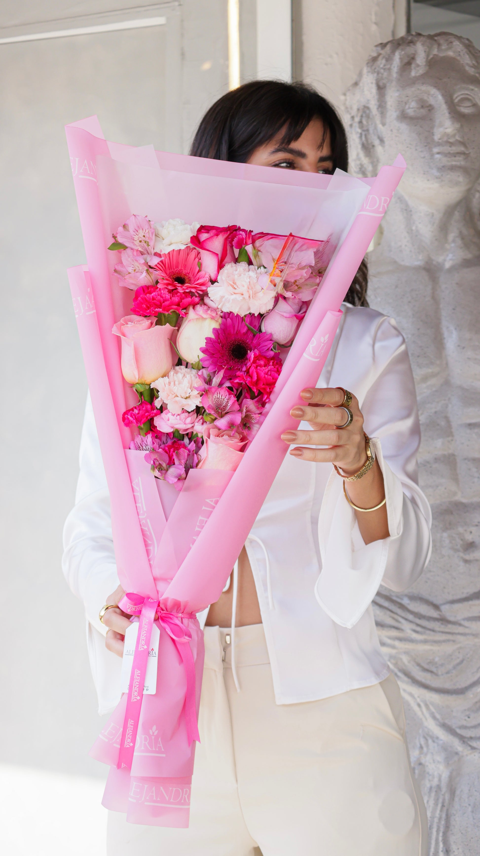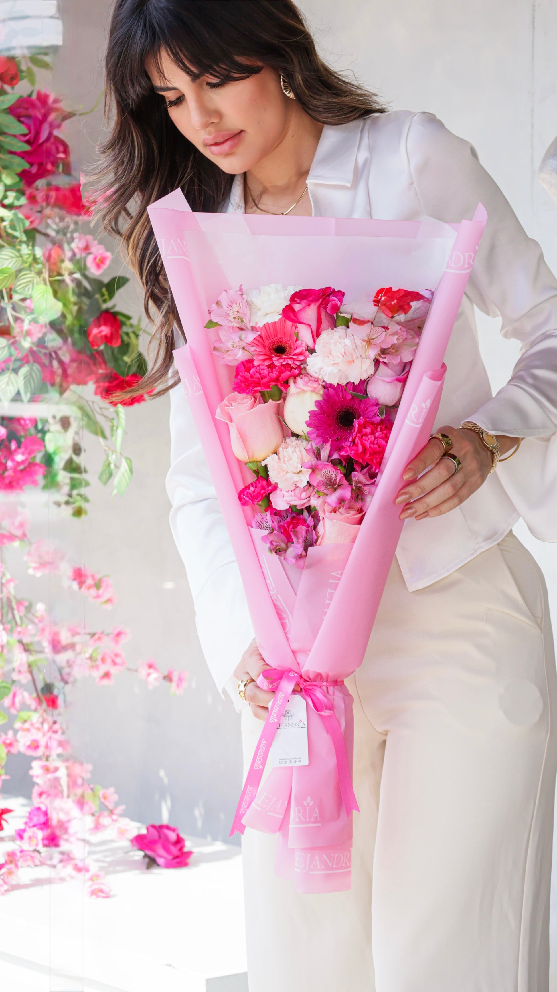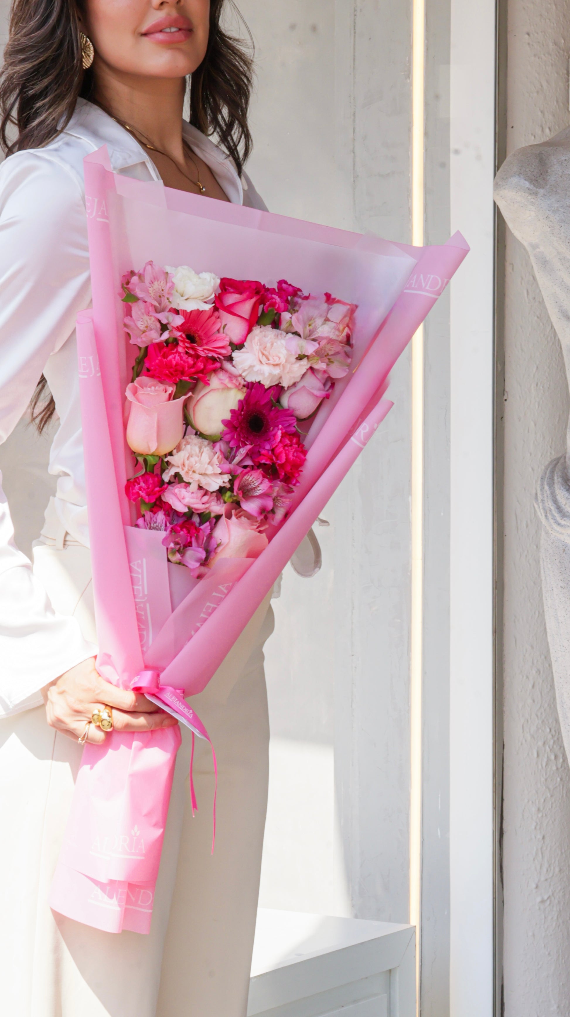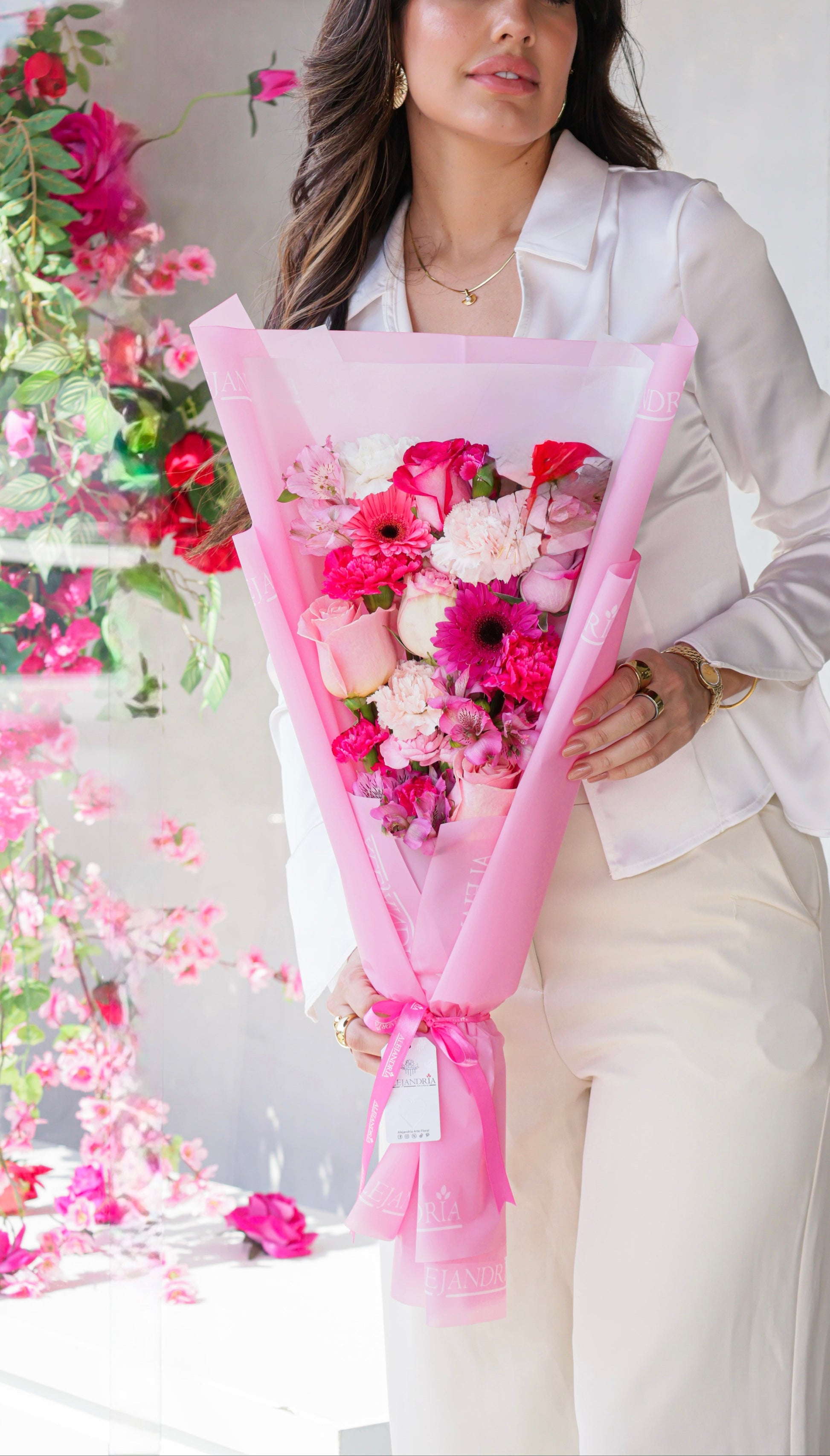 Un ramo delicado y moderno en tonos rosados, ideal para cumpleaños, aniversarios o simplemente para sorprender con estilo, elaborado a mano con flores premium seleccionadas por nuestros floristas, cuidando cada detalle para transmitir emoción, alegría y sofisticación.