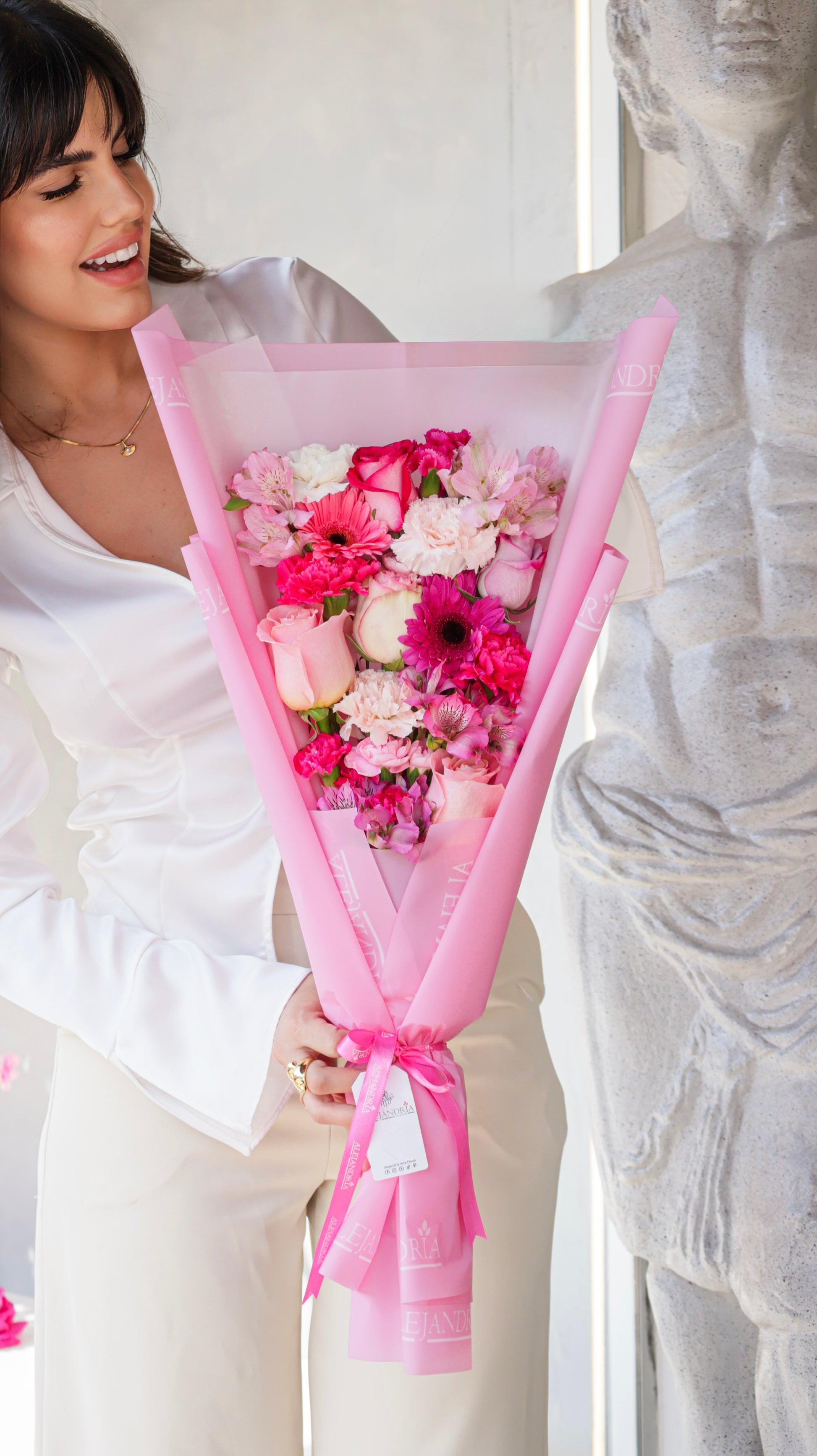 El diseño combina equilibrio, color y estilo, logrando una presentación impecable que representa la esencia de Alejandría: floral, elegante y con propósito.